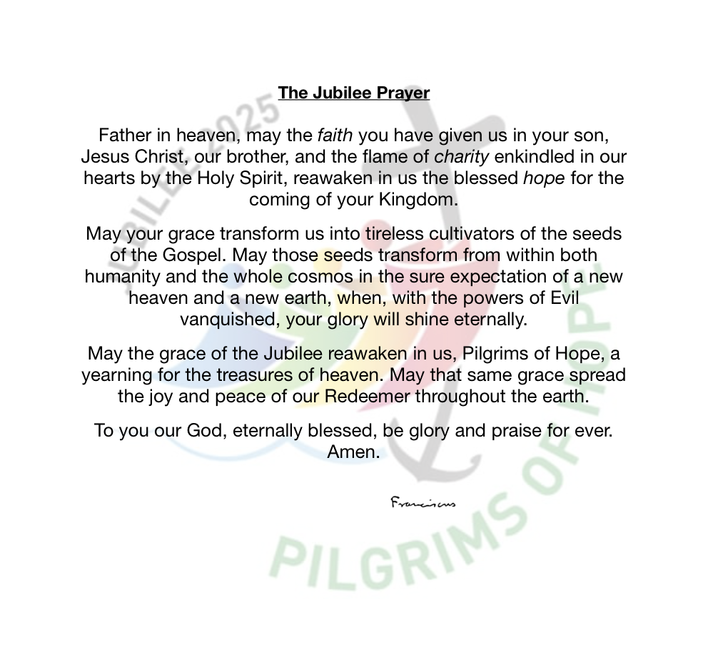 Act of Hope: My God, I hope in you, for grace and for glory, because of your promises, your mercy, and your power.